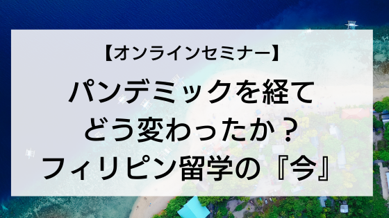 【参加受付中】オンラインセミナー:パンデミックを経てどう変わったか?フィリピン留学の『今』